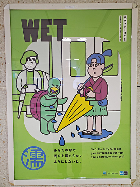 東京メトロのマナーポスター、かぐや姫、金太郎と来て、浦島太郎&カメさん登場。