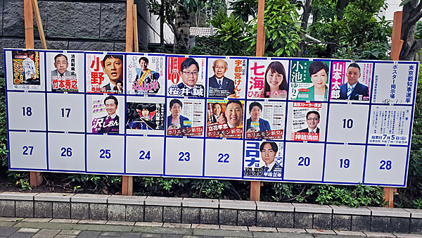 夕方5時30分頃、都庁前ポスター掲示場です。
