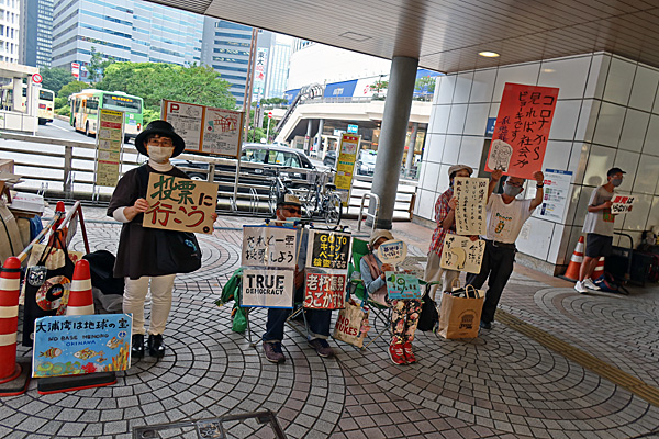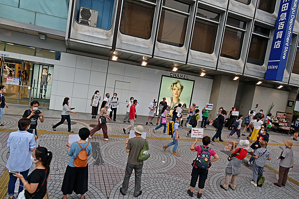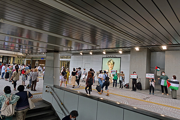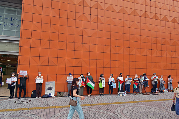 新宿駅西口、イスラエルのパレスチナ占領地ヨルダン川西岸併合に反対するサイレント・スタンディングです。