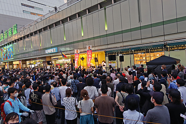 ソーシャルディスタンス街宣を謳いながら、またそれに向けて努力もしてましたが、人気の反映とは言え、実際にはかなり「密」でしたね。