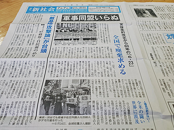 1面下段の「人種差別許さない!全米の闘い 世界に波及」という記事に僕の撮った写真が使われてます。