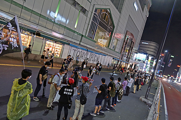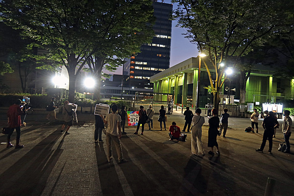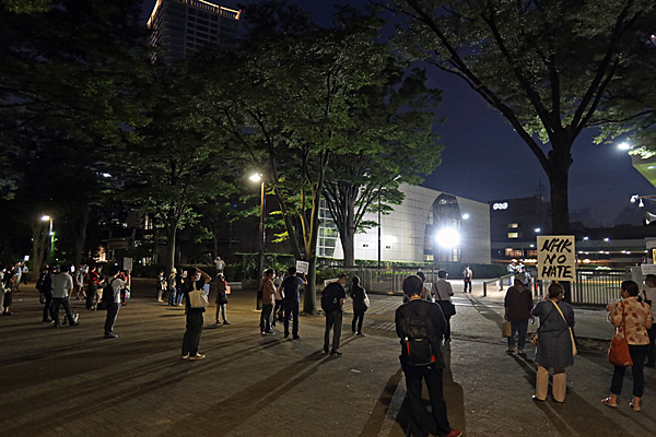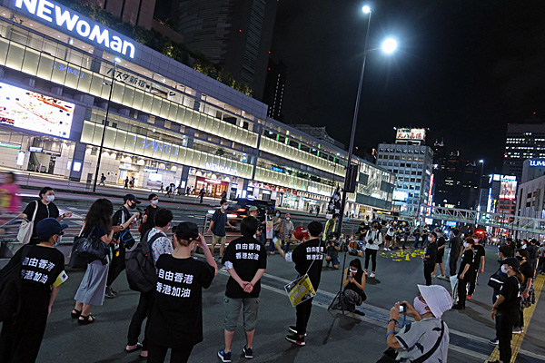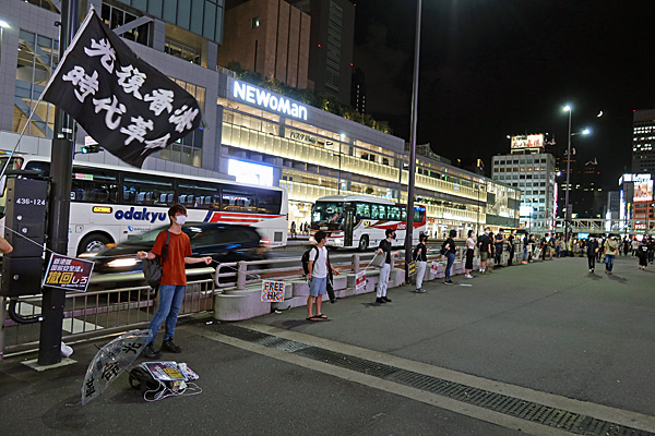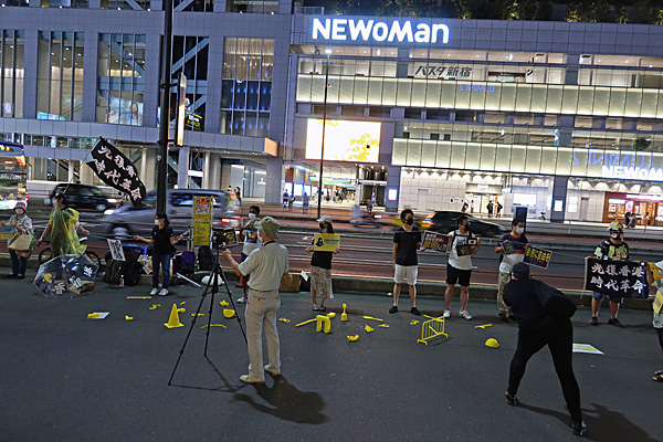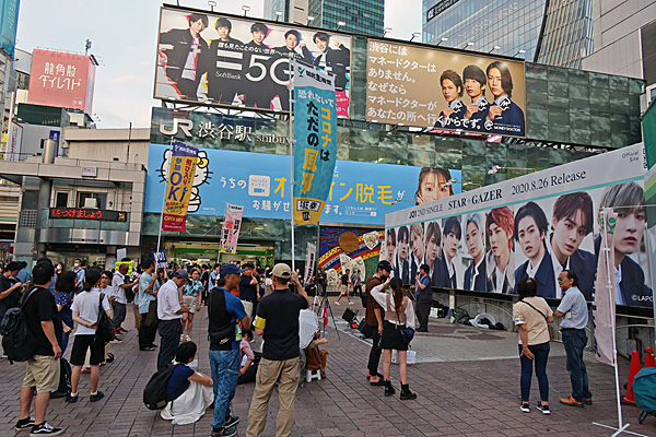 午後6時頃、渋谷ハチ公前に「コロナはただの風邪」の人たちいました。