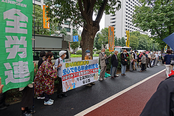 同じ頃、東京地裁前には年金引き下げ違憲訴訟の皆さんがいました。