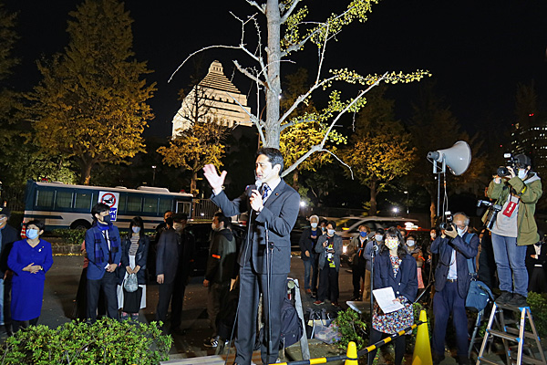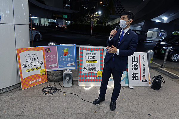 新宿西口地下広場、山添拓議員をゲストに迎えたまちかどトークセッションです。