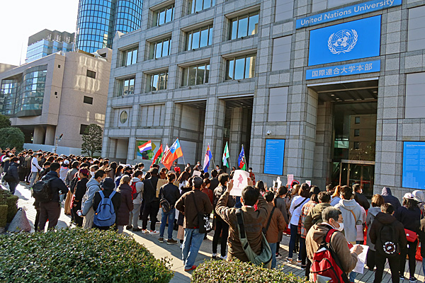 in front of the United Nations University