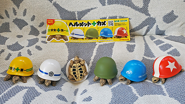 大木晴子さんに「安全第一」の黄色いカメさんをいただいて、ヘルメット+カメ、これで全5色が揃いました(^0^)。