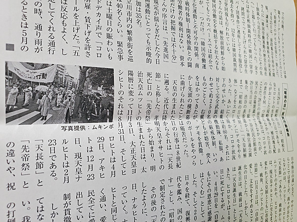 第2面の「昭和の日」反対行動報告に僕の撮った写真が使われてます。