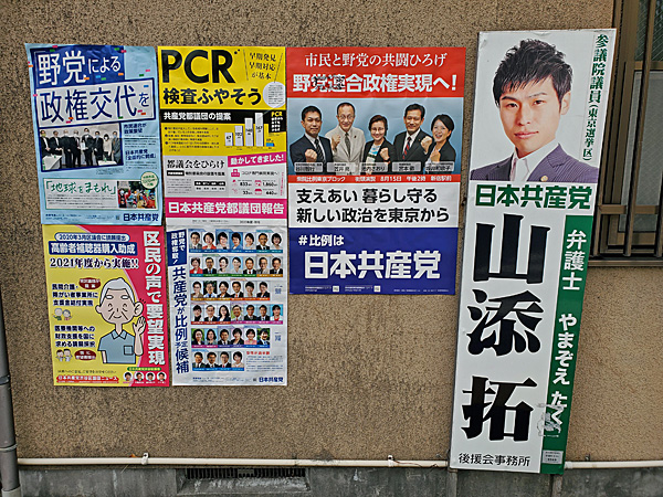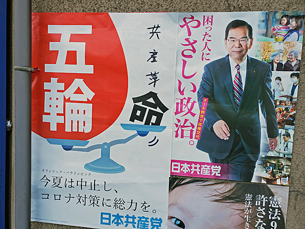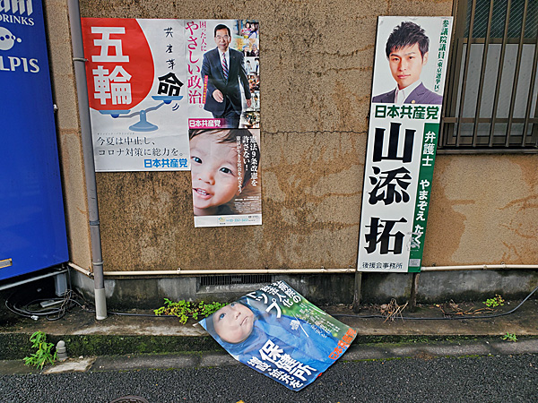 他の政党のポスターは落ちてないのに、雨風の通り道だった?それとも貼り方が悪かった?と思いながら写真を撮ったのですが、帰宅してからPCでよく見ると、「命」が「共産革命」になってるじゃないですか。