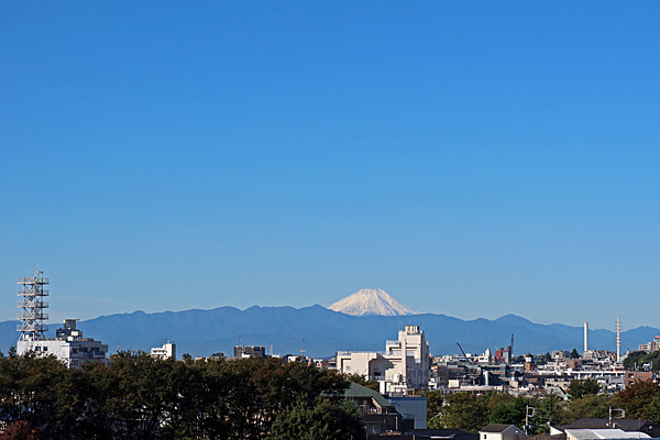 朝、冠雪した富士山が見えました。