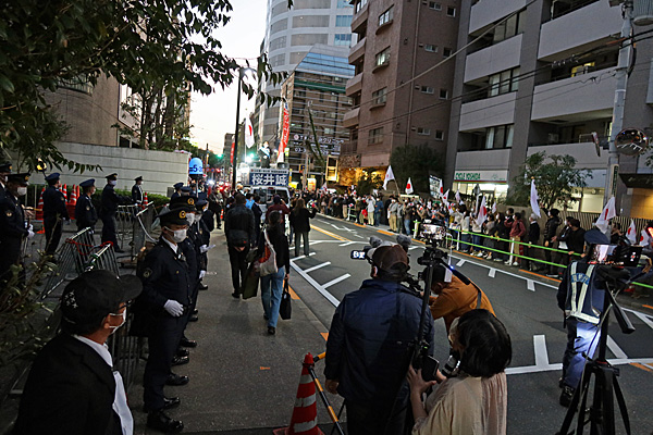 中国大使館前です。