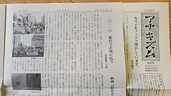 情報紙「アナキズム」第20号(11月1日発行)が届いてました。
