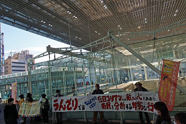 しばらく来ない間に、ヘイトな連中、川崎駅前読書会の活動の成果か、ずいぶんと端っこの方に追いやられてたんですね。