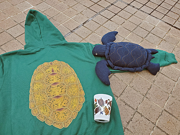 背中にカメの甲羅のあるパーカーとデニムのカメちゃんとカメのマグカップをもらいました。