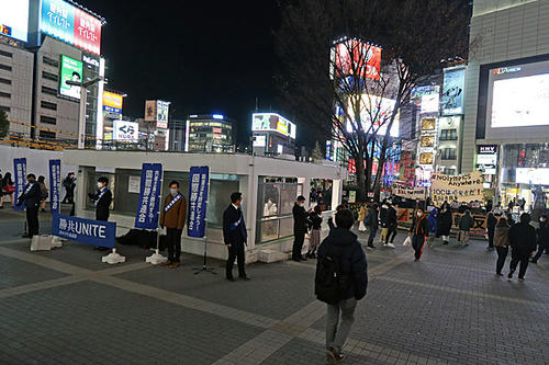 何を訴えてるのか、国際勝共連合 勝共UNITE 青年学生遊説隊の人たちもいました。