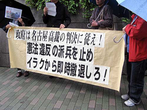 政府は名古屋高裁の判決に従え!憲法違反の派兵を止めイラクから即時撤退しろ!5.10防衛省抗議要請行動