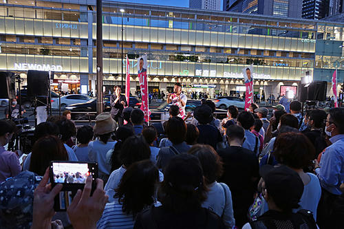 新宿駅南口でれいわ新選組 山本太郎代表が街頭演説してました。