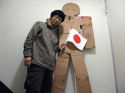 このダンボール人間は今年の「WORLD PEACE NOW 3.22」でキタロウ氏より譲り受けたものですが(日の丸は確か新年一般参賀でもらったんだったか?)、我が家で未だ健在です。