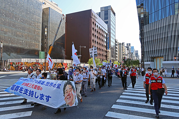 14時過ぎ、数寄屋橋交差点を安倍晋三国葬儀支持のサイレント・デモが通り過ぎていきました。