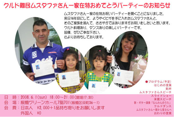 「クルド難民ムスタファさん一家 在特おめでとうパーティー」