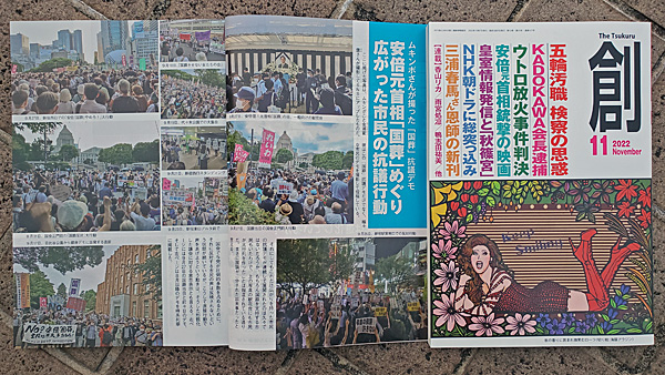 〈巻頭グラビア〉に見開き2ページで『ムキンポさんが撮った「国葬」抗議デモ 安倍元首相「国葬」めぐり広がった市民の抗議行動』という記事が載ってます。