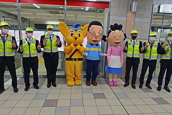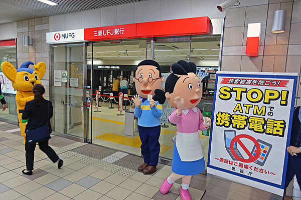 アコルデ代々木上原の三菱UFJ銀行の前にピーポくんとサザエさんとマスオさんがいました。