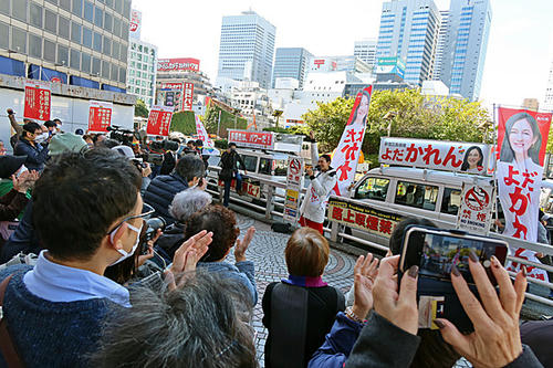 新宿駅西口、よだかれん候補の第一声です。