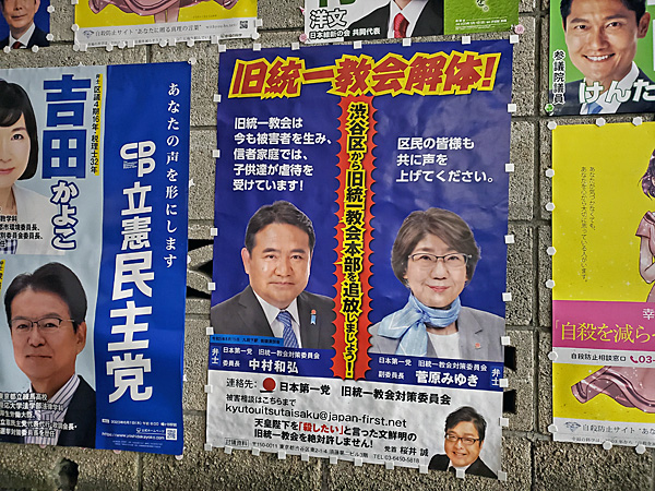 幡ヶ谷駅前で日本第一党が「旧統一教会解体!」って街宣してました。