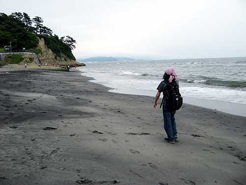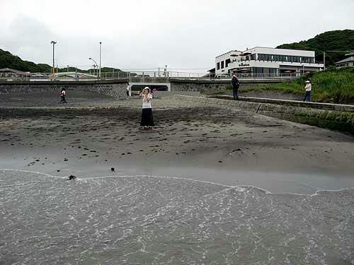 背景に見える白い建物(僕はここで帰りにビールを飲んだ)の向こう(並び)が稲村ヶ崎温泉です。