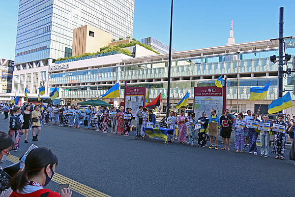 毎週日曜のウクライナ支援募金デモ、今日は「ウクライナ人が浴衣を着て日本に感謝の気持ちを伝える会」だそうです。