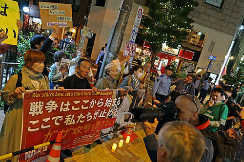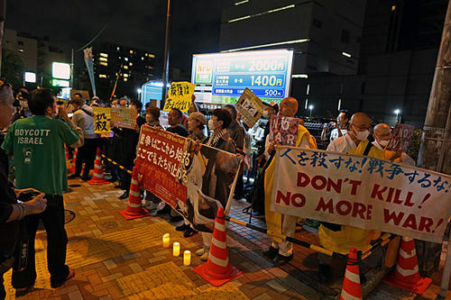 Protest Rally naer the Embassy of Israel in Tokyo Japan