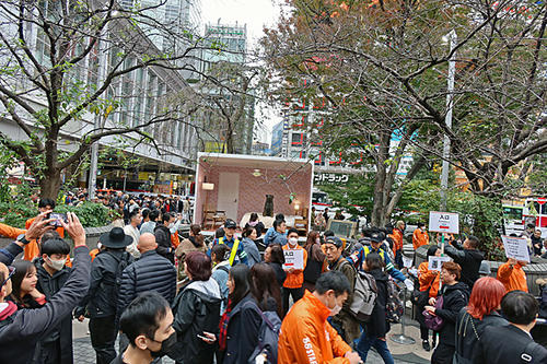 オレンジ色のお揃いのジャケットを着た人たち、最初、参政党かと思っちゃいました(^0^)。