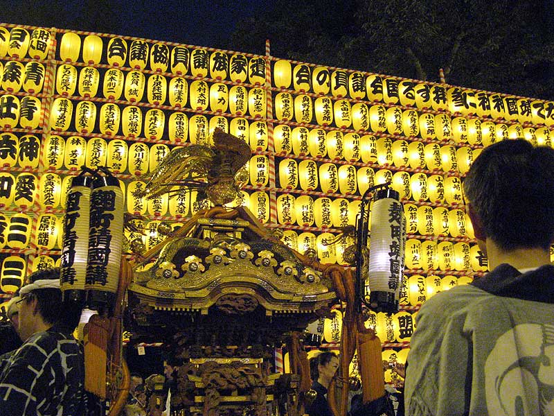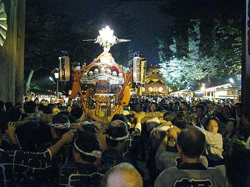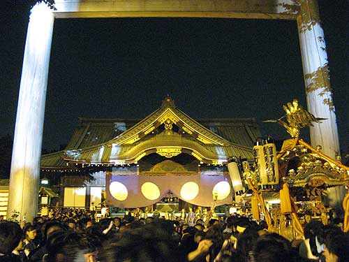 神輿の向こうの提灯は「みんなで靖國神社に参拝する国会議員の会」の皆さん。