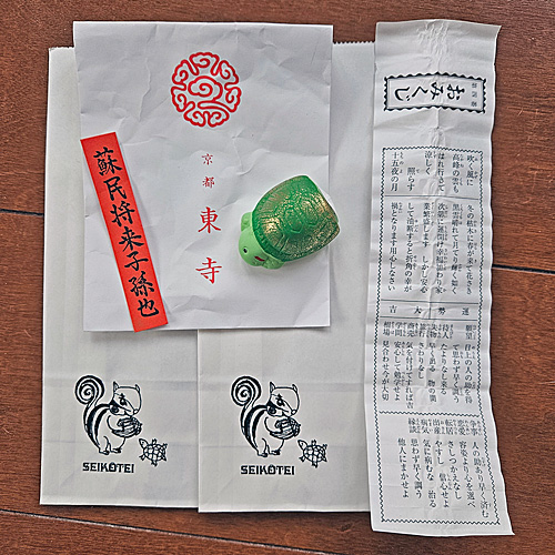 週末、つれあいが所用で京都に行って、ついでの観光で、東寺で亀のおみくじを引いてきてくれました。