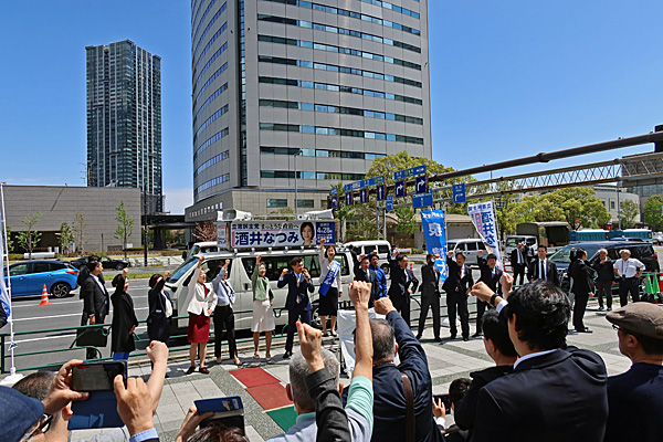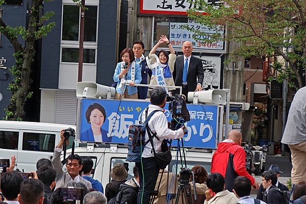 今日は、飯山あかり(日本保守党)→金澤ゆい(日本維新の会)→酒井なつみ(立憲民主党)→吉川りな(参政党)と4候補見て回りました。