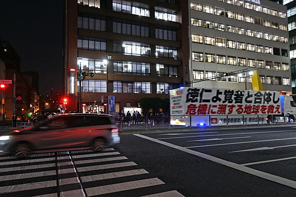 「覚者播磨屋助次郎 救世広報隊」トレーラーが通っていきました。