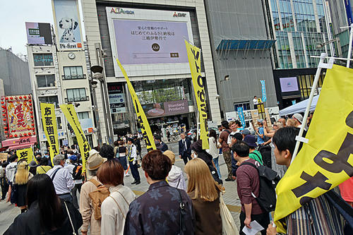 4月13日の同趣旨の池袋のデモが主催者や参加者たちが1万人を超えると豪語する規模だったので、主催者は違いますが、今日はどのくらい集まるか、と思っていたら、100人いるかいないかという感じでした。