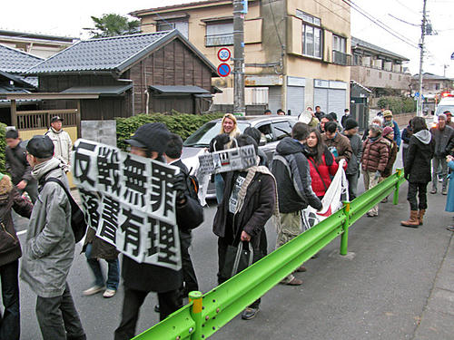 「反戦無罪」と「地域ファシズム反対」を訴えるデモ
