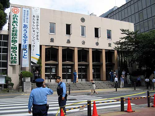 公会堂前の公園はいつかの反天デモのときのように完全に封鎖され、パトカーが何台か配置されてました。