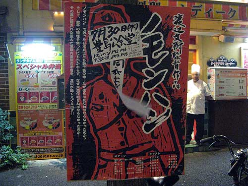 http://minnanokouenn.blogspot.com/http://jack-in-the-box.upper.jp/stopnike/shoecase/080730pr.pdf宮下公園での記者会見が1時から2時で、『ノモンハン』が2時からと6時から、『天皇伝説』が4時からと8時からなので、どうしようか迷ったのですが、2時からの『ノモンハン』上映中に不測の事態発生ってことも充分あり得る、と思い、記者会見は15分で切り上げて池袋に向かいました。