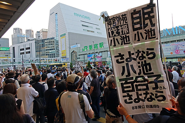 新宿駅南口バスタ前、小池百合子都知事の街頭演説です。