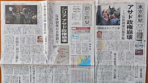 朝日新聞 東京新聞 12月9日(月) 夕刊 第1面
