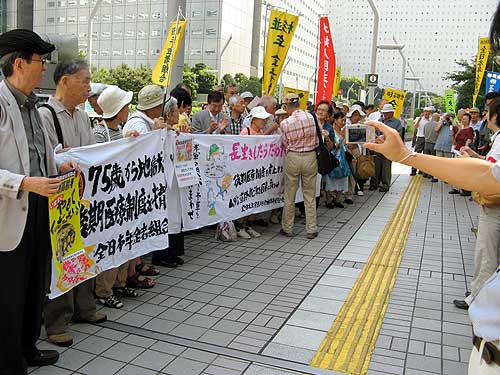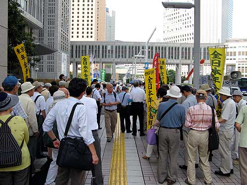 新しいパスポートを受け取りに都庁に行ったら、全日本年金者組合の皆さんがこんなのやってました。