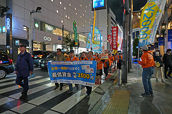 横浜からの帰り道、新宿三丁目駅で地上に出たら、「最低賃金 時給2000円」を掲げたデモ行進に遭遇しました。