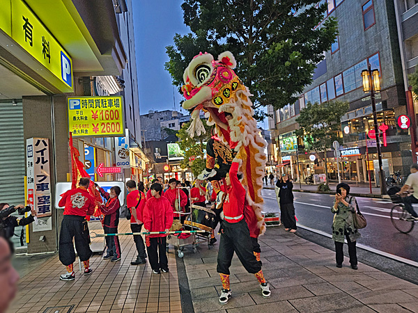 帰りに中華街で早めの夕飯を食べたら、通りを獅子舞が練り歩いてました。