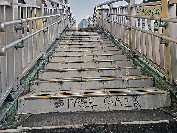 「パレスチナの抵抗に連帯を!10.7全国アクション @渋谷」のとき、上り下りした歩道橋の1つでこのグラフィティを見ましたが、そのときは写真を撮る余裕がありませんでした。