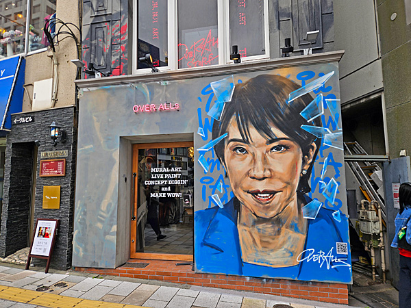 外苑前のOVER ALLsの壁画が高市早苗に。