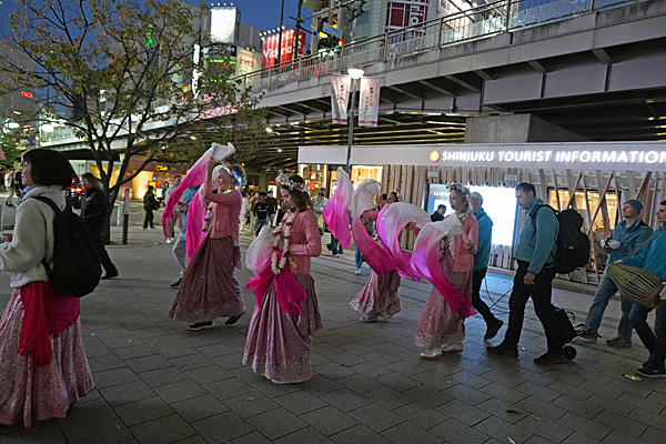 新宿駅東南口で「さよなら高市アクション」を見てたら、背後を「ハレー・クリシュナ」の皆さんが通って行きました。