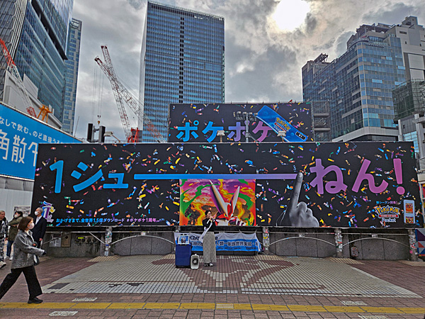ハチ公前広場で家庭連合の若い女性が1人街頭宣伝してました。