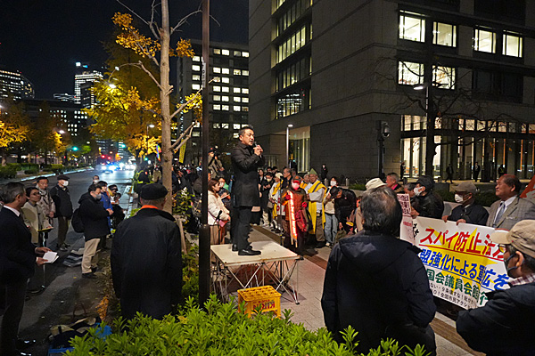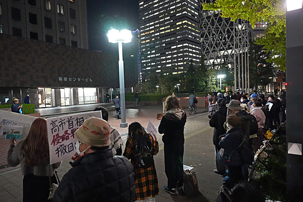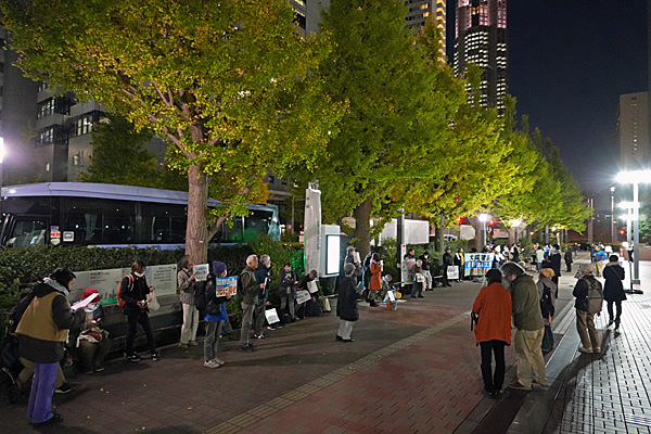 写真は本日最後(8番目)の抗議対象企業=大成建設本社(新宿センタービル)前です。