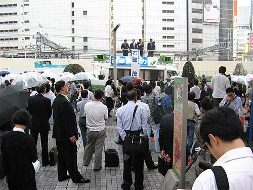 西川口&蕨から新宿に戻ると、東口で石破茂氏が街頭演説してました。